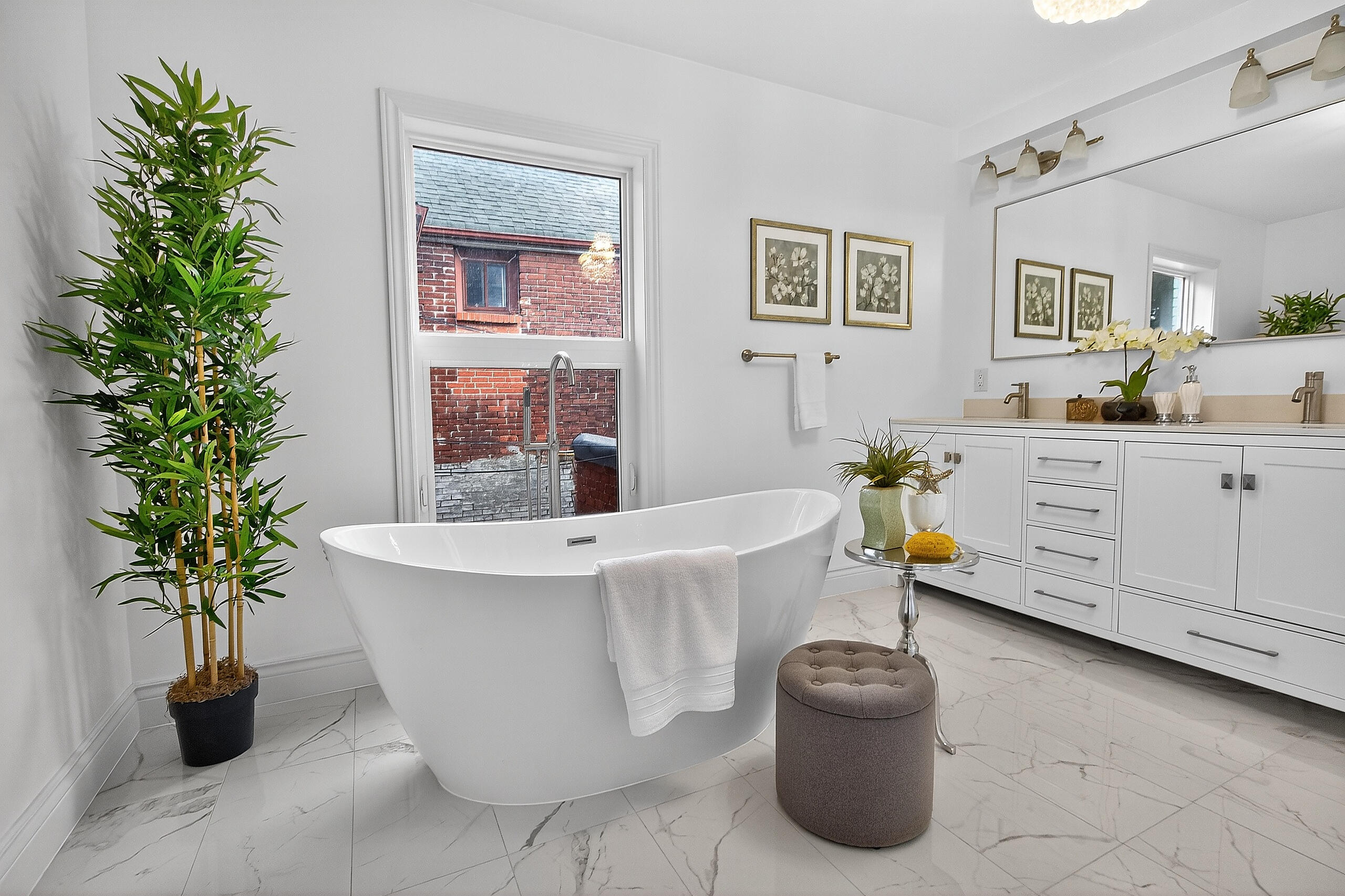 Crystal chandeliers, custom cabinetry, and a designer kitchen with premium appliances set the stage for refined living. Upstairs, the primary suite offers a spa-inspired ensuite with rainfall shower, soaker tub, and heated floors — your private sanctuary in the city.